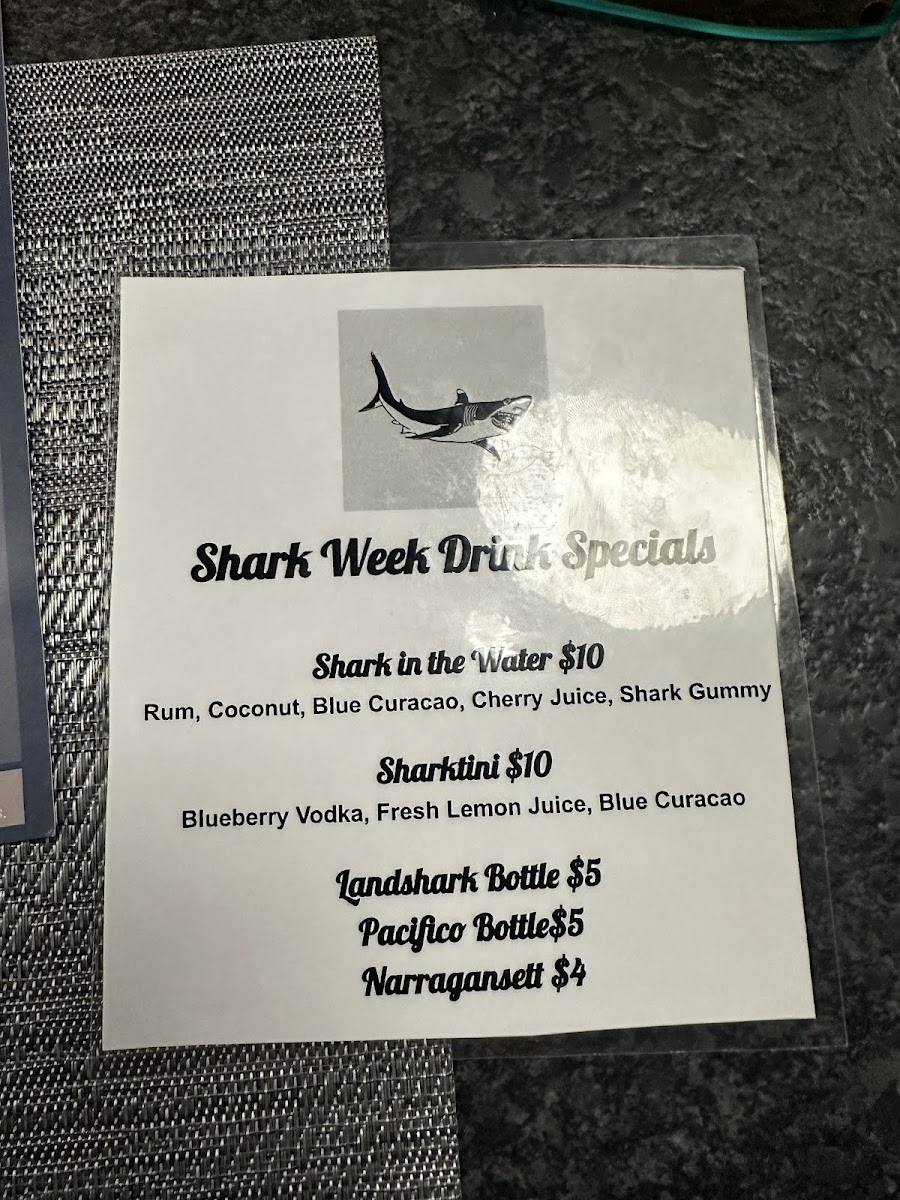 For those looking to enjoy a unique drink, the Shark Week Drink Specials are a fun choice, with options like Shark In The 'Water and the refreshing Sharktini. If you prefer something a little different, Drift offers creative cocktails such as the Drift Classic, Hazelnut, and Snow "Drift" Mojito, as well as the colorful Pink Flamingo Margarita and the tropical Mermaid Martini.